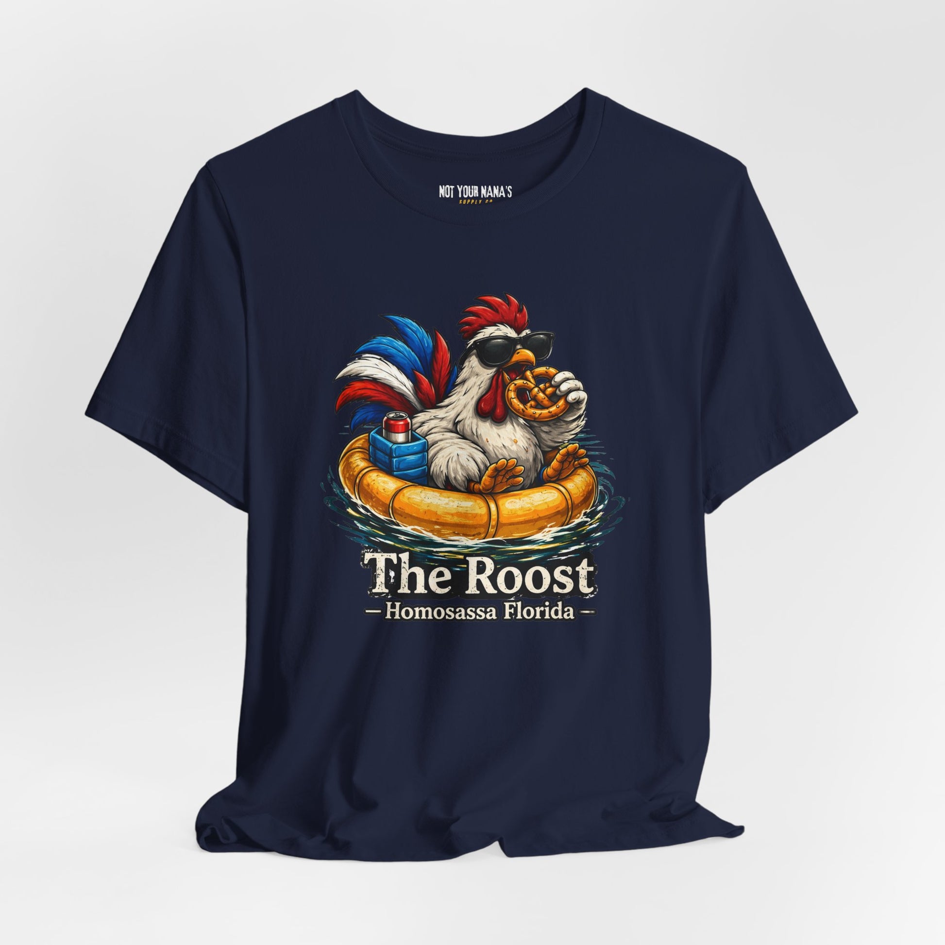Not all chickens are built the same. This one floats, snacks, and doesn’t take life too seriously—just like your favorite spot, The Roost. Designed for good vibes, cold drinks, and grilled pretzel sandwiches done right.